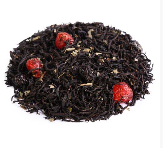 Напиток со вкусом и ароматом спелой вишни на основе черного цейлонского чая с добавлением ягод вишни .